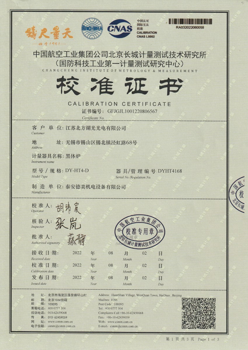 江蘇北方湖光光電有限公司-黑體爐 2022-8-17 本文被閱讀 14132 次