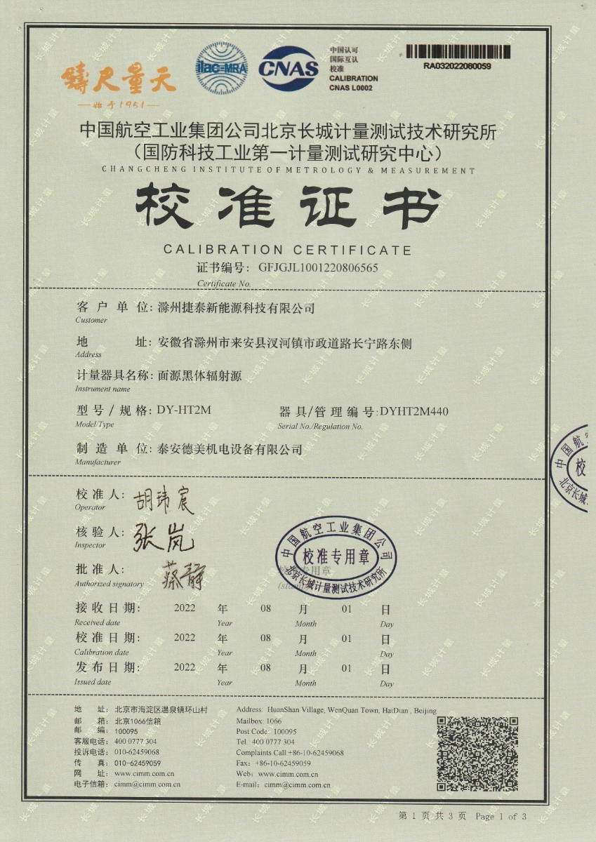 滁州捷泰新能源科技有限公司-面源黑體爐 2022-8-17 本文被閱讀 15079 次