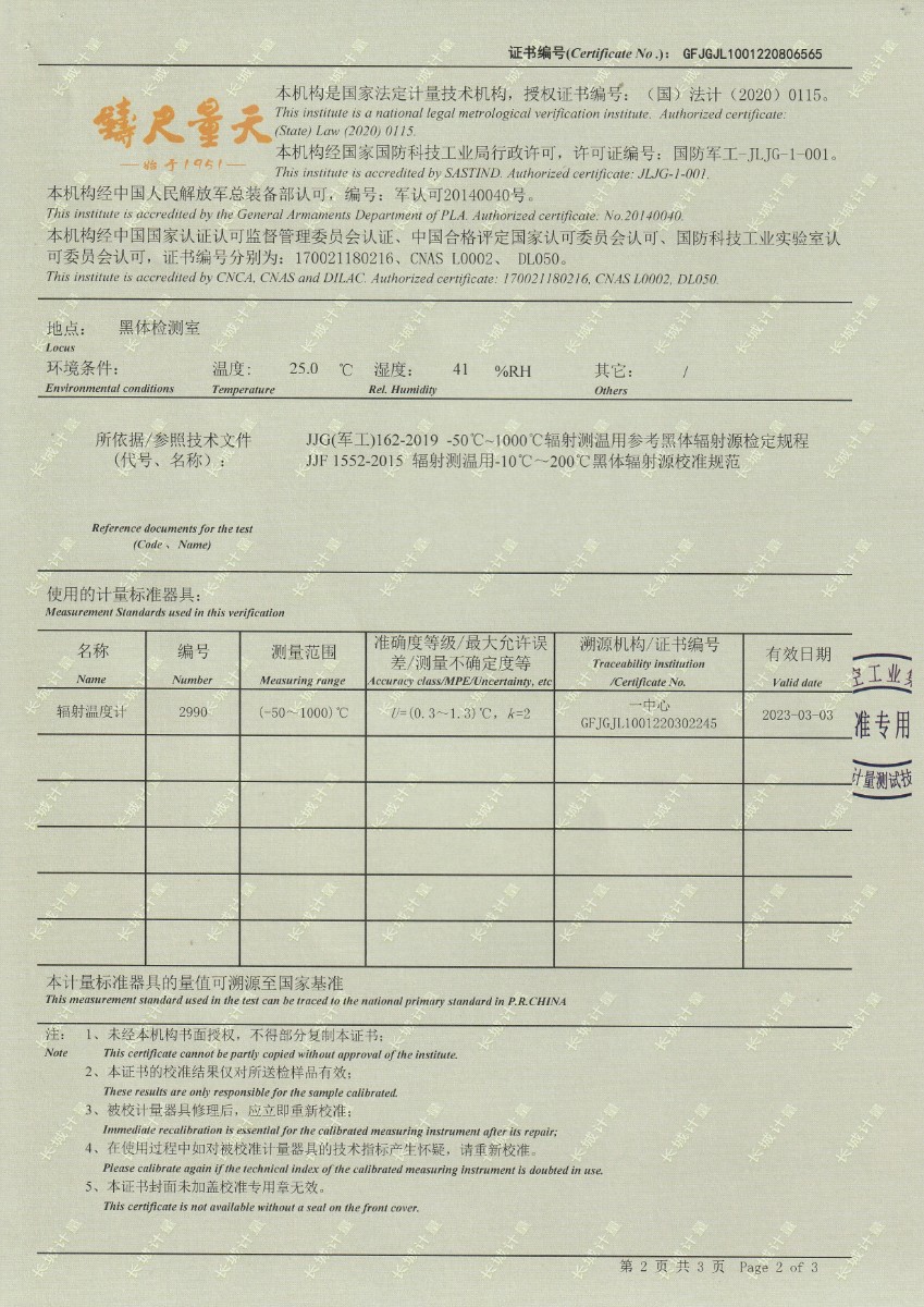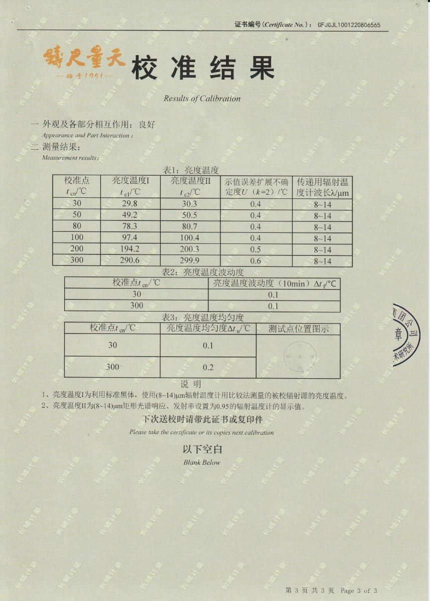 上一條:江蘇北方湖光光電有限公司-黑體爐下一條:高精度制冷恒溫槽(-80~100℃)校準(zhǔn)證書