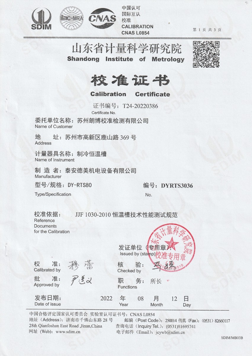 | 上一條:北京振興計量測試研究院-零度恒溫器 | 下一條:高精度制冷恒溫槽(-80~100℃)校準(zhǔn)證書 |