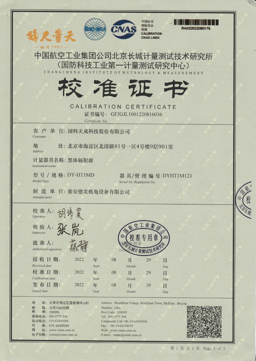國科天成科技股份有限公司-黑體輻射源 2022-9-5 本文被閱讀 15082 次